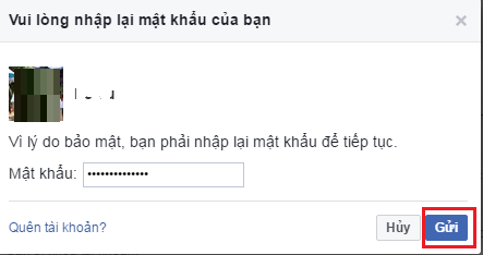 Bước 9: Facebook sẽ yêu cầu bạn nhập mật khẩu để xác nhận, nhấn Gửi