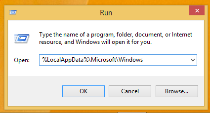 Bước 1: Bạn nhấn tổ hợp phím Windows + R để mở hộp thoại Run trên Windows 8/8.1 lên, sau đó bạn gõ %LocalAppData%\Microsoft\Windows sau đó click OK