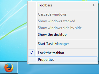 Click chuột phải vào thanh Taskbar, chọn Properties