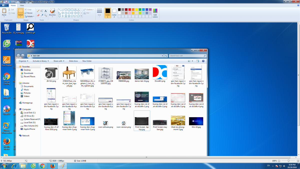 Hoặc bạn nhấn phím Alt + Print Screen để chụp hình cửa sổ giao diện của phần mềm, game nào đó (máy tính sẽ chụp cửa sổ trên cùng của giao diện desktop)