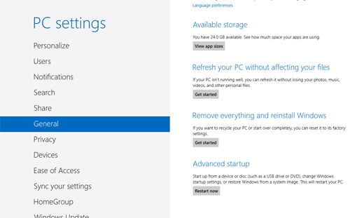 Nếu như các hệ điều hành khác bạn restore, ghost hay cài lại toàn bộ hệ điều hành sẽ tốn của bạn không ít thời gian, nhất là với những người không am hiểu về công nghệ. Trong Windows 8 bạn có thể sử dụng tính năng Reset you PC vô cùng đơn giản, tính năng này cho phép bạn khôi phục toàn bộ hệ điều hành như cũ chỉ trong khoảng 6 phút, nhanh hơn rất nhiều so với 30 phút của Windows 7 trước đây.