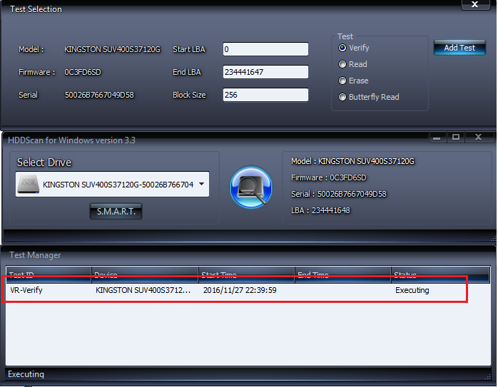 Bước 4: Bạn sẽ nhìn thấy ổ cứng của bạn xuất hiện trong cửa sổ Test Manager, click đúp vào đó