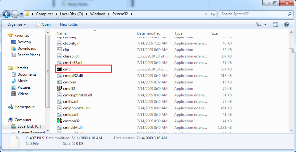 Bạn truy cập theo thư mục C:\Windows\System32\ sau đó click đúp vào file cmd.exe