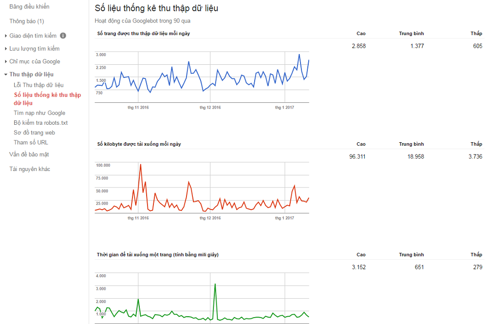 Báo cáo chi tiết về số url, dung lượng dữ liệu mà Google thu thập từ trang web của bạn