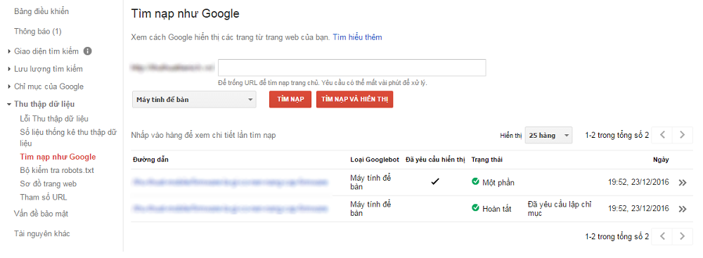 Thu thập dữ liệu >> Tìm nạp như Google