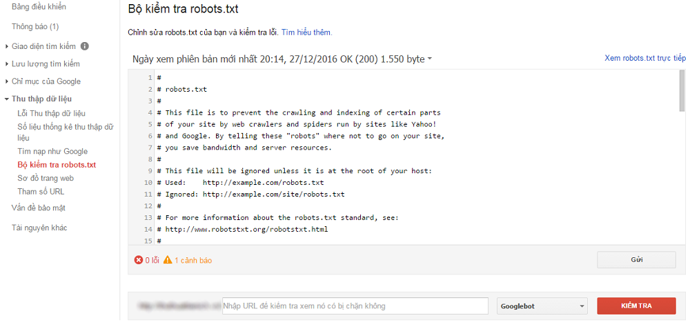 Thu thập dữ liệu >> Bộ kiểm tra robots.txt