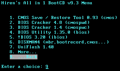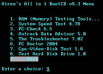Các chức năng cụ thể có trong đĩa Hiren's BootCD