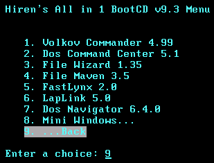 Nếu bạn sử dụng MS-DOS thì bạn không cần boot từ ổ đĩa mềm nữa, Hiren's BootCD sẽ tạo ra cho bạn một ổ đĩa mềm ảo và 1 ram disk dung lượng 50MB.