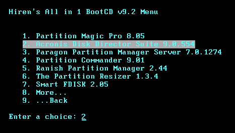 Trong Hidren' boot bạn chọn Acronis Disk Director Suite 9.0.554 như hình trên