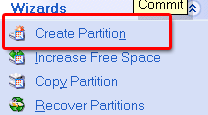 Nhìn về menu bên trái chọn Create Partition