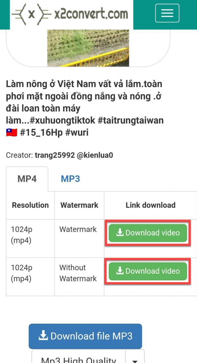 Cách 2: Tải video TikTok bằng X2convert.com
