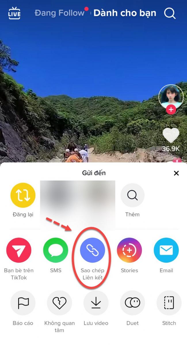 Nhấn vào Sao chép liên kết để lưu url video vào bộ nhớ tạm thời của máy