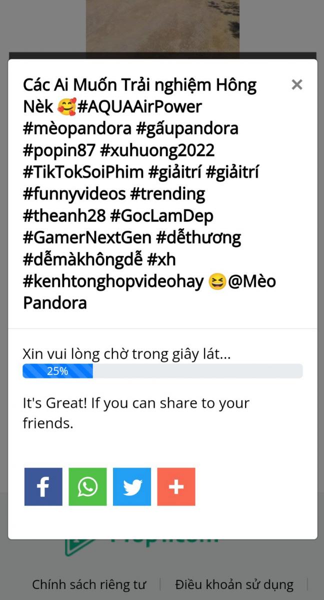 Bước 5: Video sẽ lập tức được tải về điện thoại của bạn, tùy thuộc vào tốc độ mạng nhanh hay chậm mà quá trình tải về sẽ tốn thời gian khác nhau. Khi quá trình tải về hoàn tất bạn click vào Mở ngay lập tức video sẽ được phát mà không bị dính logo nữa.