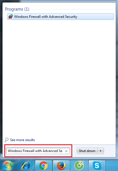 Để chặn một ứng dụng trong máy tính kết nối internet bạn cần vào Start nhập vào ô tìm kiếm chữ Windows Firewall with Advanced Security (Win 8 trở lên ấn phím Windows + S sau đó điền Windows Firewall with Advanced Security) >>click Enter