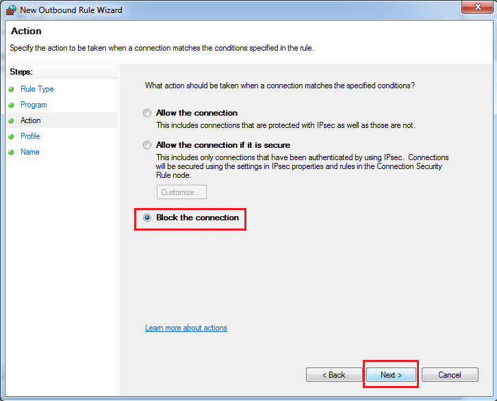 Chọn Block the connection >> click Next