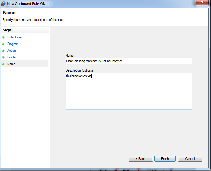 Đôi khi vì một lý do nào đó mà bạn cần chặn một phần mềm bất kỳ kết nối internet (tránh tự động cập nhật, ngăn chặn người dùng khác sử dụng chương trình đó để kết nối internet...). Hướng dẫn dưới đây sẽ giúp bạn ngăn chặn việc kết nối internet từ chương trình đã cài sẵn vào máy tính của bạn.