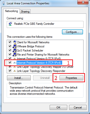 Chọn Internet Protocol Version 4 (TCP/IPv4) -> chọn Propeties