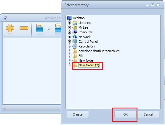 Bước 3: Chọn thư mục cần đặt mật khẩu, click OK