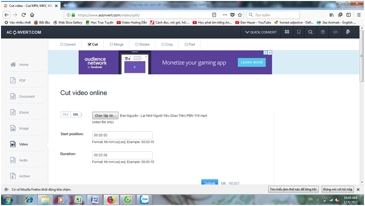 Bước 3: Bạn phải xác định chính xác đoạn cần cắt bằng cách nhập điểm đầu vào khung Start position cùng với  điểm kết thúc trong khung Duration rồi rồi chọn  Submit.
