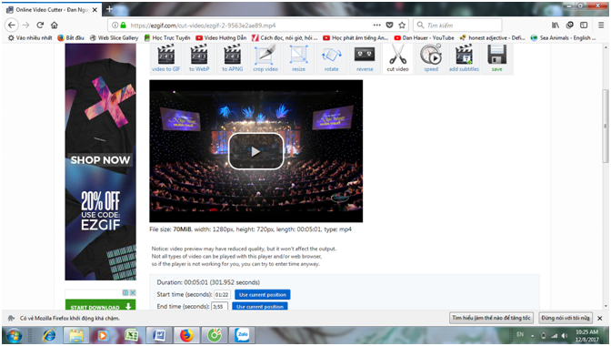 Bước 3: Nhập vào khung Start time điểm đầu và End time điểm kết thúc của video cần cắt.