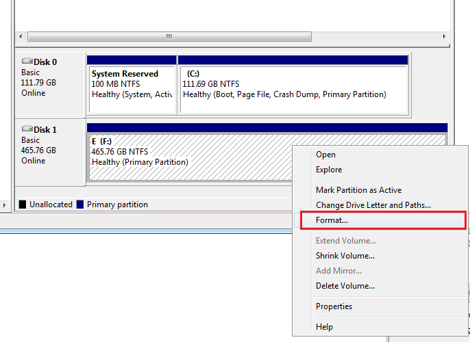 Cách 2: Trường hợp cách 1 không được bạn cần định dạng lại ổ cứng, tại cửa sổ Disk Management bạn click chuột phải vào ổ cứng gắn ngoài chọn Format
