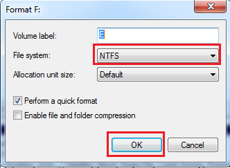 Bạn lựa chọn định dạng cho phân vùng (File system) sau đó click OK