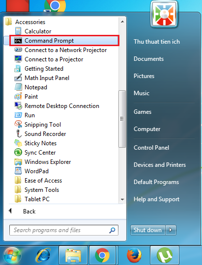 Bước 1: Để mở Command Prompt trên Windows bạn click vào Start tại góc trái phía dưới màn hình sau đó chọn All Programs >>Accessories >>Command Prompt.