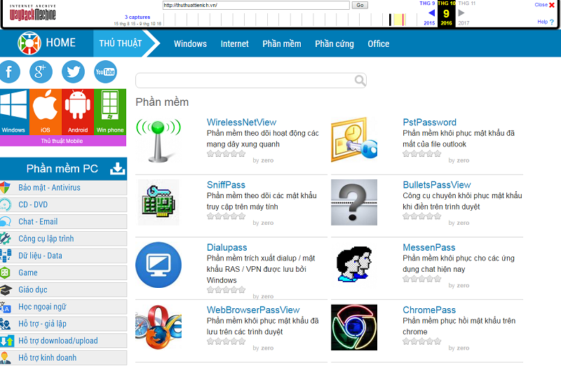 Đây là lịch sử giao diện website thuthuattienich.vn được web.archive.org lưu lại vào ngày 9/10/2016