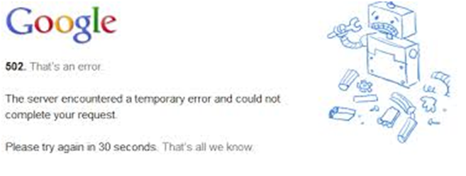 Ngoài ra, còn có các biểu hiện của lỗi như  “502 Server Error: The server encountered a temporary error and could not complete your request.”