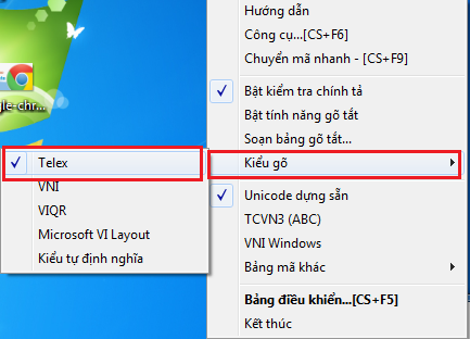 Đa số trong chúng ta thường hay gõ theo kiểu Telex, nhiều khi trong quá trình sử dụng chúng ta click chuyển nhầm sang kiểu gõ khác mà không biết, hãy thiết lập kiểu gõ đúng theo hình bên dưới.