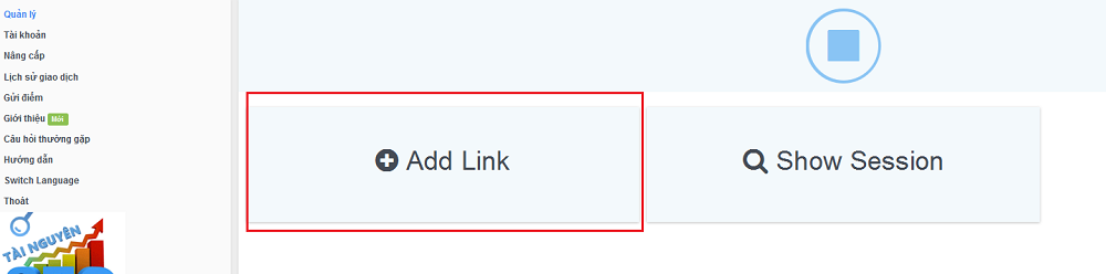Để tăng traffic bằng Traffic4seo trước tiên bạn click vào Add Link trong phần Quản lý