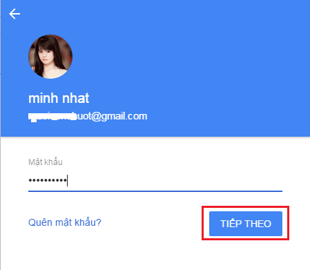 Bước 4: Nhập mật khẩu >> click Tiếp theo