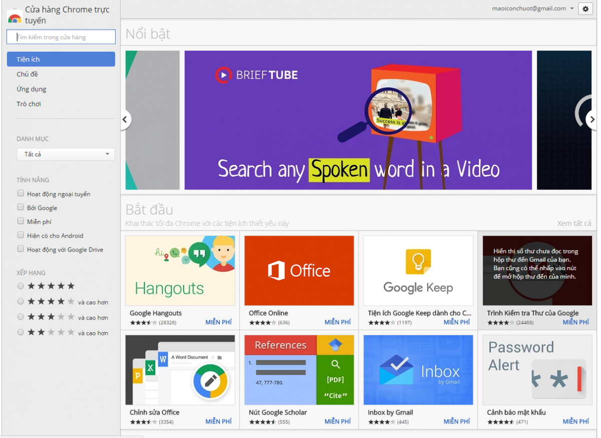 Bước 3: Sau khi truy cập vào Web store (cửa hàng Chrome trực tuyến) bạn sẽ thấy hiển thị rất nhiều tiện ích dành cho trình duyệt của bạn, hãy click vào tiện ích miễn phí mà bạn muốn sử dụng
