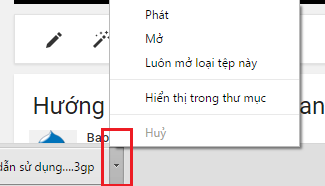 Sau khi download video xong, bạn click vào hình mũi tên chỉ xuống cạnh thông tin video vừa tải, có các tùy chọn như Mở (dùng để bật video) hay Hiển thị trọng thử mục (vào thư mục đã tải video)