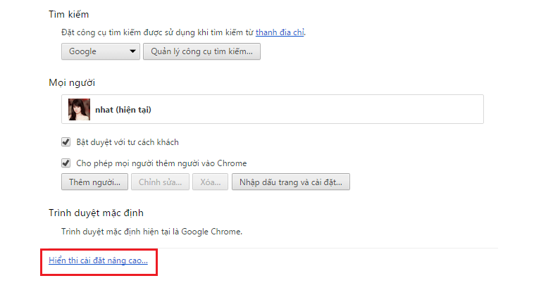 Bước 2: Kéo xuống dưới cùng chọn Hiển thị cài đặt nâng cao...