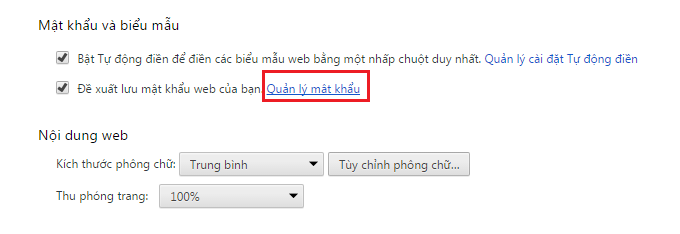 Bước 3: Click Quản lý mật khẩu