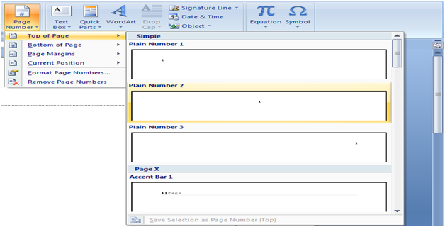 Trong thẻ Insert/ Page Number. Bạn hãy lựa chọn cách đánh số trang theo mong muốn: