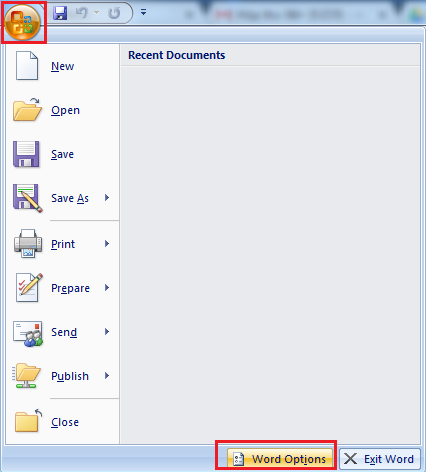 Bước 1: Click vào biểu tượng Office bên trái phía trên khung soạn thảo Word, chọn Word Options