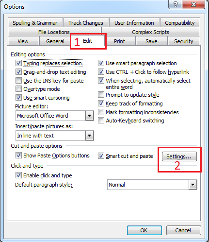 Bước 2: Tại cửa sổ Options mới hiện ra, bạn chọn tab Edit sau đó click Settings