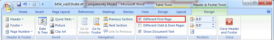 Bước 3: Sau đó các bạn tích chọn Different First Page