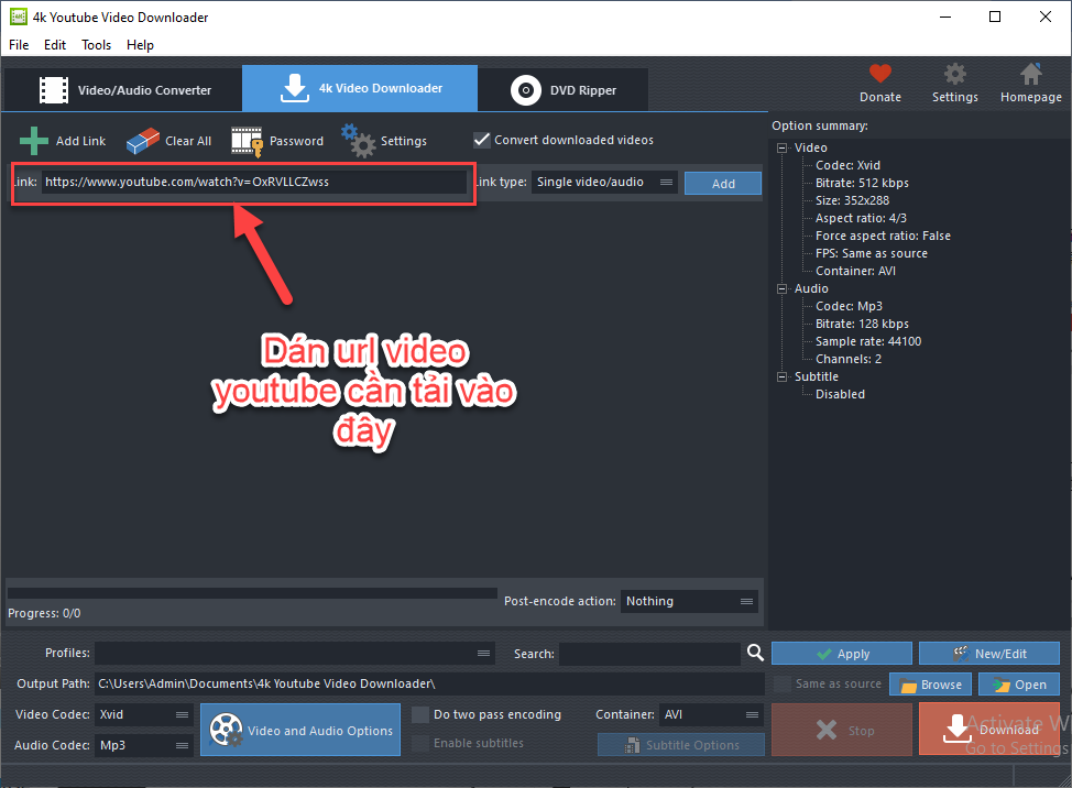 Bước 3: Sao chép URL của video YouTube mà bạn muốn tải xuống vào ô Link