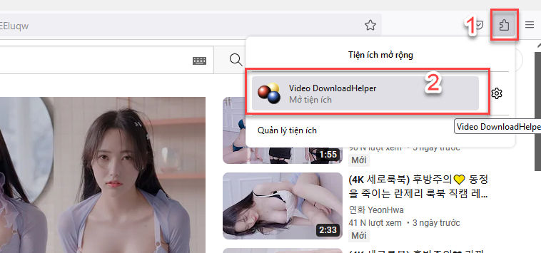 Bước 3: Click vào biểu tượng Addons trên Firefox sau đó chọn Video DownloadHelper