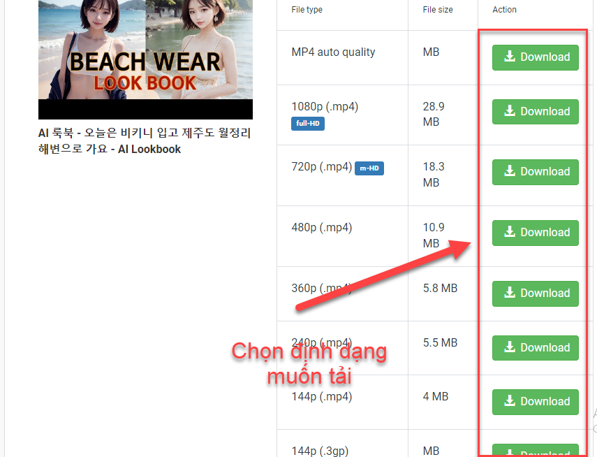 Lựa chọn định dạng cần tải sau đó click vào Download